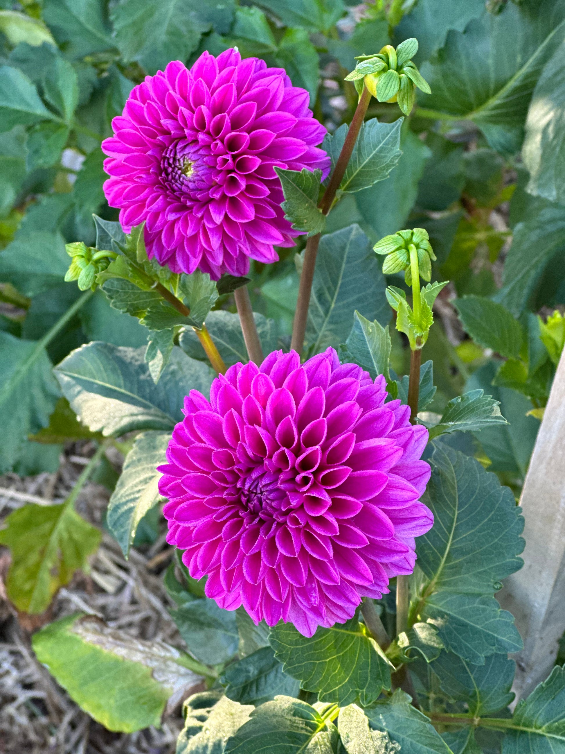 Bright pink ball dahlia.